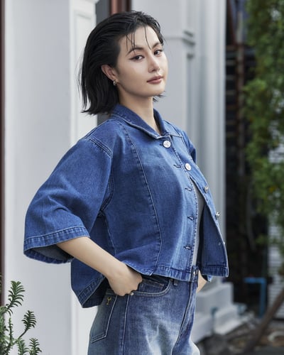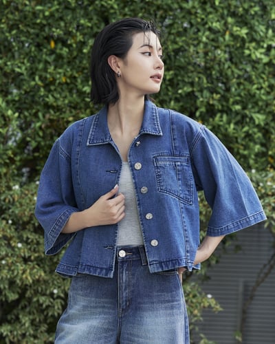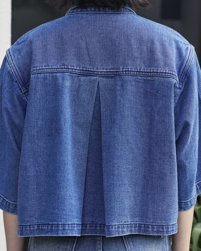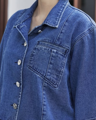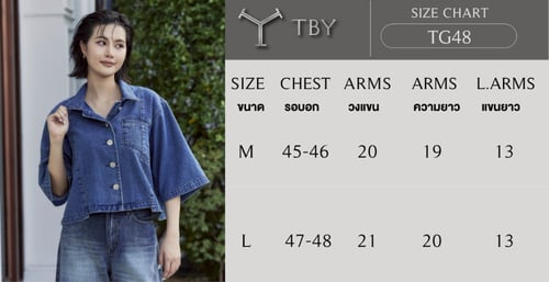 เสื้อเชิ้ตยีนส์แขนสั้นทรงOVER SIZE ชิ้นหลังจับจีบ(TG48_M)