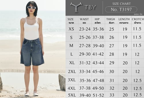 → Bermuda Jeans ทรงกางเกงขาสั้น 3 ส่วน เอวสูง