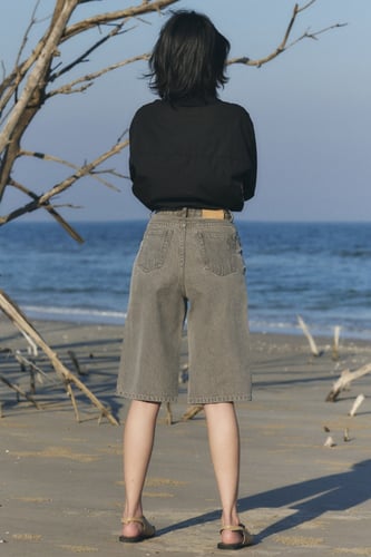 → 𝑪𝒂𝒑𝒓𝒊 𝑺𝒉𝒐𝒓𝒕𝒔 ทรงกระบอก ขาสั้น 3 ส่วน เอวสูง