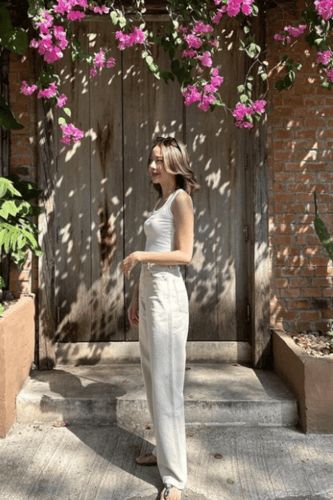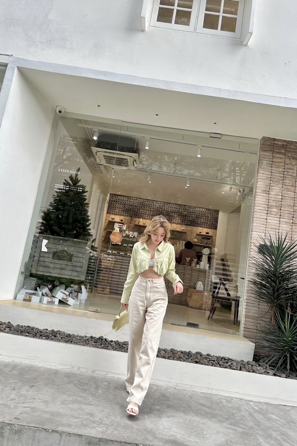 กางเกงยีนส์ทรง Loose Jeans สีเบจ