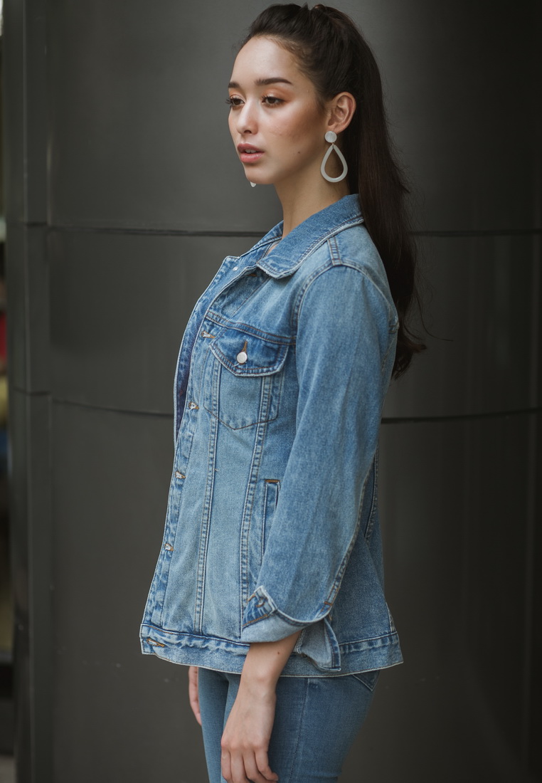 แจ๊กเก็ตยีนส์สีไบโอขัดด่าง