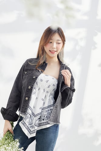 แจ๊กเก็ตยีนส์ดำฟอก ผ้าไม่ยืด